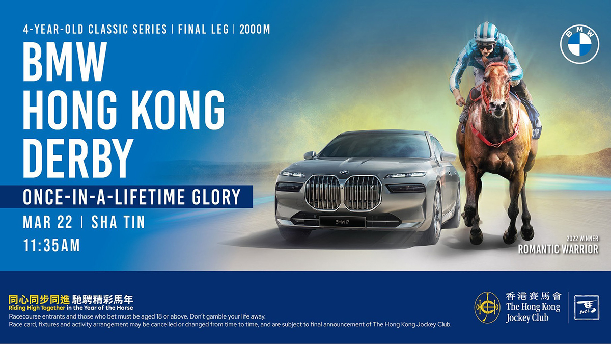 Sunday’s (22 March) 10-race card at Sha Tin begins at 1pm with the Class 4 Luger Handicap (1600m). The 149th BMW Hong Kong Derby (2000m), worth HK$26 million, is scheduled as Race 7 at 4.05pm.