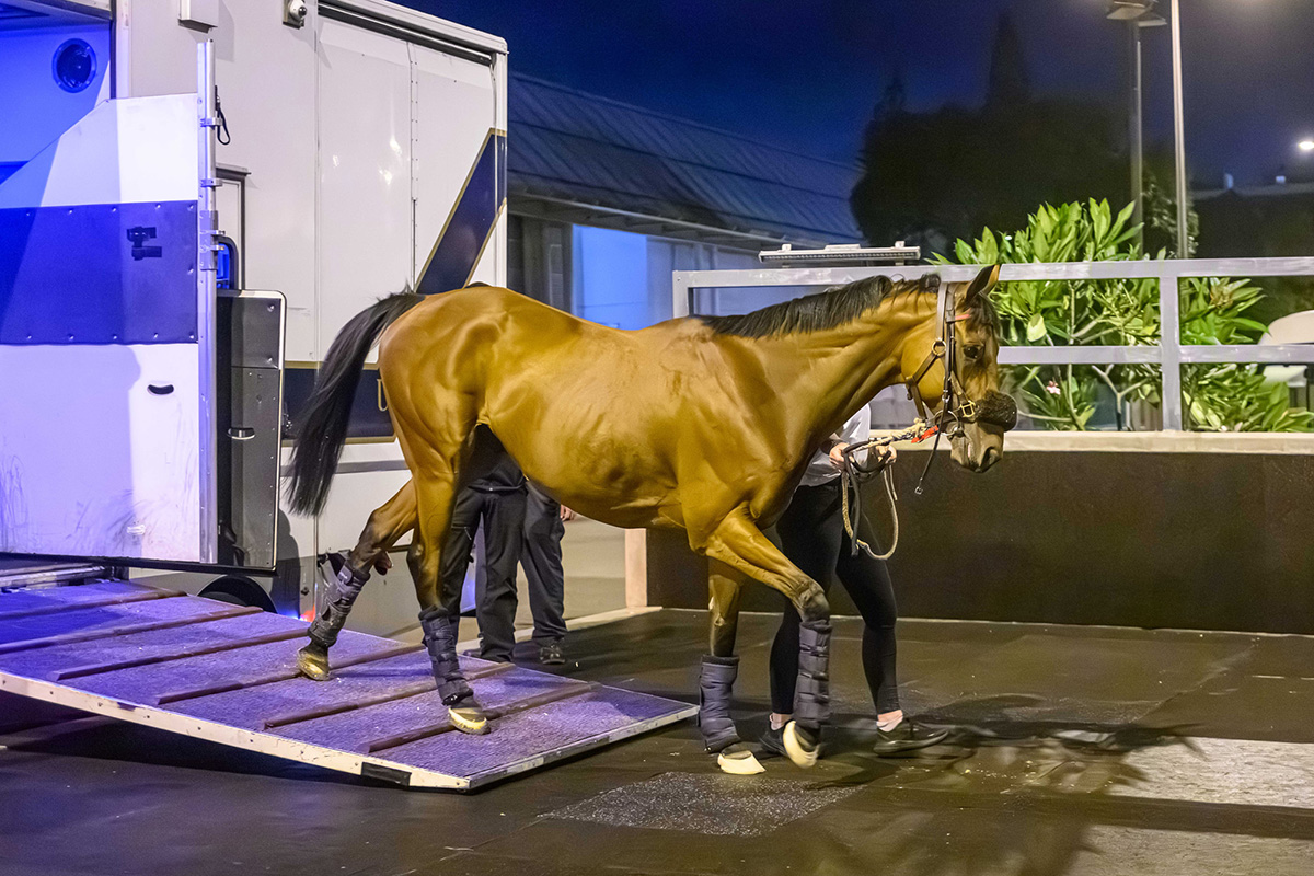 17/05/2025 11:32 參戰今屆一級賽渣打冠軍暨遮打盃(2400米)的英國代表「譽滿杜拜」已於今晚(5月17日星期六)抵港。這匹由練馬師郗國思訓練的七歲馬,將於5月25日星期日在沙田馬場角逐此項季內最後的一項一級賽。 「譽滿杜拜」