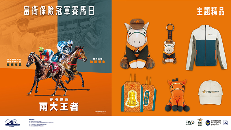 -「馬場有禮」當天推出多款富衛保險冠軍賽馬日主題精品。精品數量有限,售完即止。