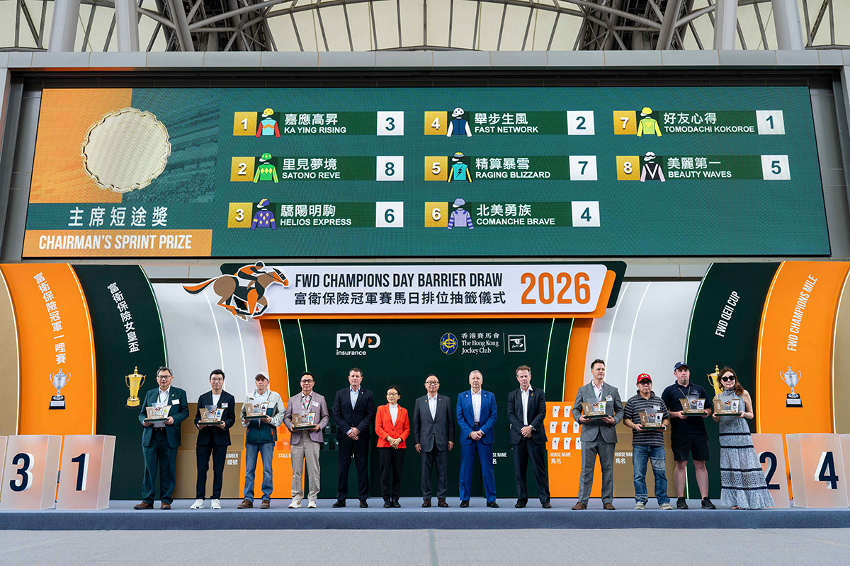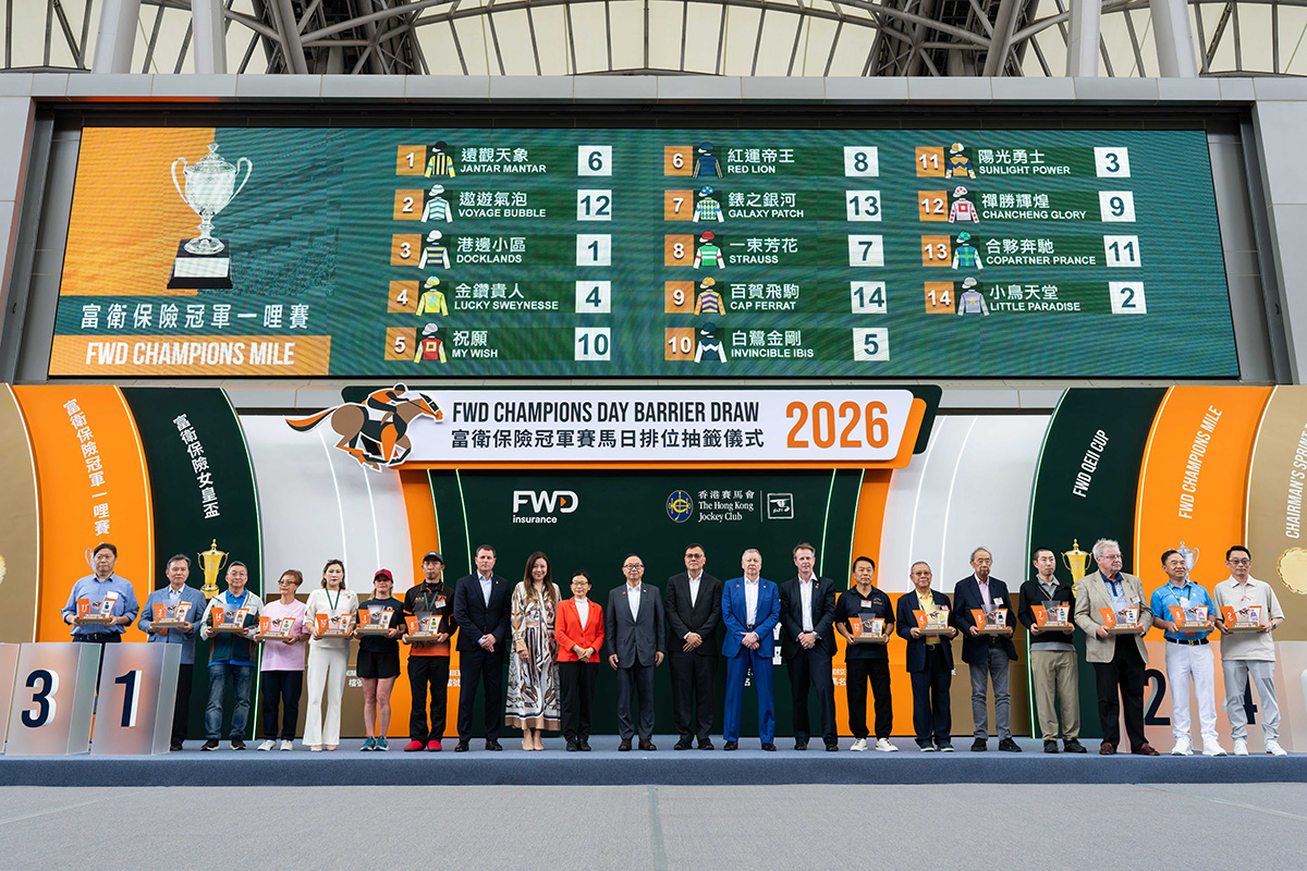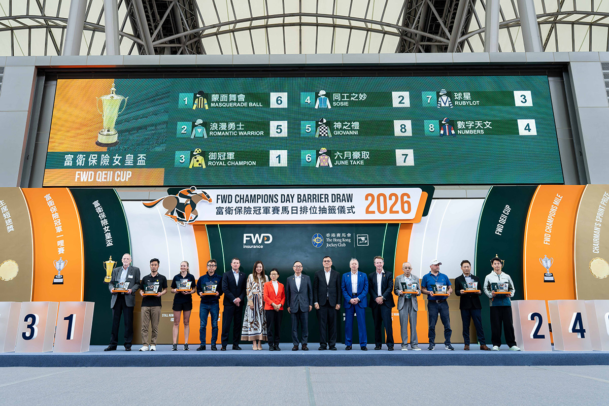 The 2026 FWD Champions Day Barrier Draw Ceremony took place in the Parade Ring at Sha Tin Racecourse this morning (Thursday, 23 April).