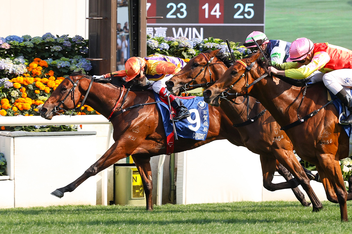 Craig Williams wins the 2025 BMW Hong Kong Derby on Cap Ferrat.