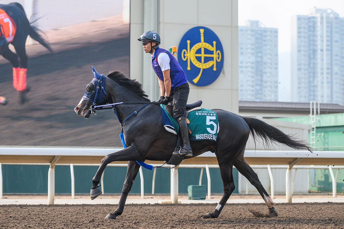 The five-year-old came out alone and looked relaxed on his return to Hong Kong, with the FWD QEII Cup set to be his first start since his win at Sha Tin in December. He came out slowly before building up to a slow canter on the all-weather.