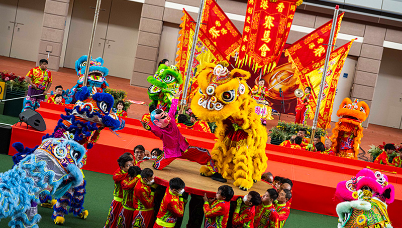 馬年賽馬日現場節慶匯演星光熠熠,兩組人氣表演嘉賓輪番獻唱,與您一同唱旺馬年好運!醒獅舞出瑞氣,騎師親臨現場,為大家送上新春祝福,讓您在馬場盡情感受節日喜悅,滿載馬運歡欣迎新歲。親臨現場,一起沾喜氣!