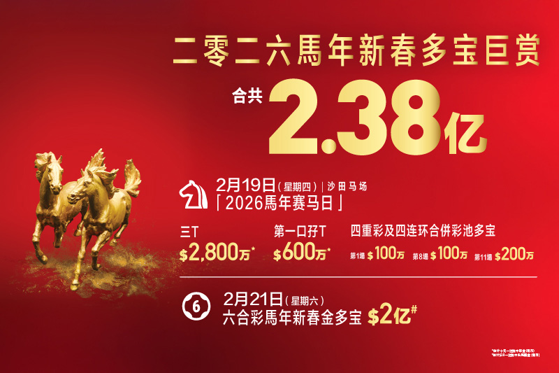 活动在香港举行,活动及优惠受有关条款及细则约束。活动、有关条款及细则在各方面均受香港特别行政区法律管辖。香港赛马会可能不时取消、延后或修改有关活动的任何内容(包括但不限於地点、日期或时间、表演或其他项目、设施进入要求、礼品、折扣或其他优惠)或修改相关条款及细则而不作另行通知且不承担任何退款、赔偿或其他责任。资料及图片只供参考,并不构成任何建议。