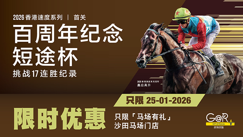 「马场有礼」于1月25日特别推出沙田马场门店限时优惠。购买指定「嘉应高升」精品*即享8折优惠!凡以正价购买任何一件指定精品*,再购买一件指定「嘉应高升」精品*,即可获赠指定爱赛马襟针(40mm) 一个 (款式将随机派发)。产品及礼品数量有限,售或送完即止。(限量名额: 200)