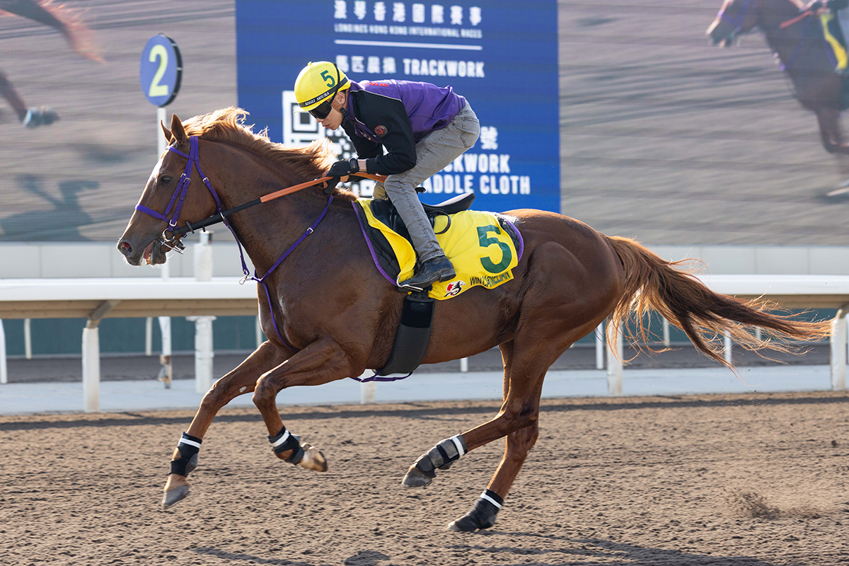賽事資訊 浪琴香港短途錦標 賽事資訊 晨操 參賽馬匹 12月13日 12月12日 12月11日 12月10日 12月09日 12月08日 12月13日 12月12日 12月11日 12月10日 12月9日 12月8日 晨操影片 「樂於助人」 與週一相若,這匹育馬者盃草地短途大賽季軍馬今早率先單獨出操,在全天候跑道快踱。策騎此駒的Nicola Dowell說:「馬兒感覺極佳,而且充滿新鮮感!我正嘗試讓牠適應右轉跑道,因為牠過去數月在美國,已習慣左轉。今晨只是一課慢功夫,主要是讓牠在長途旅程後增添一些新鮮感。牠已九歲,希望牠知道自己在做甚麼。」 「紅瑪瑙」 此駒由騎師三浦皇成策騎,在全天候跑道進行慢跳,最後400米締速32.2秒。 三浦皇成表示:「馬兒對海外遠征習以為常,並已適應這裏的新環境,表現平靜,感覺良好。我們明天會作最後試跑,練馬師沒有給予特別指示,一切交由我安排。我也會親自為馬兒進行抽籤排位。牠在來港前已做足備戰工夫,一直保持佳態,沒有任何變化。至於草地跑道,我目前只在表面走過,但感覺軟硬度適中。」