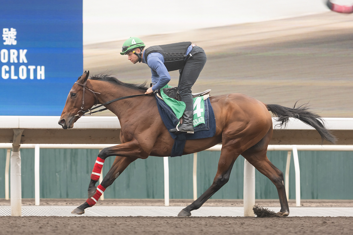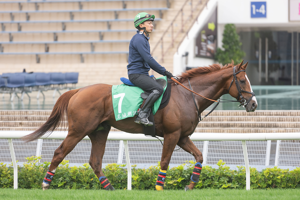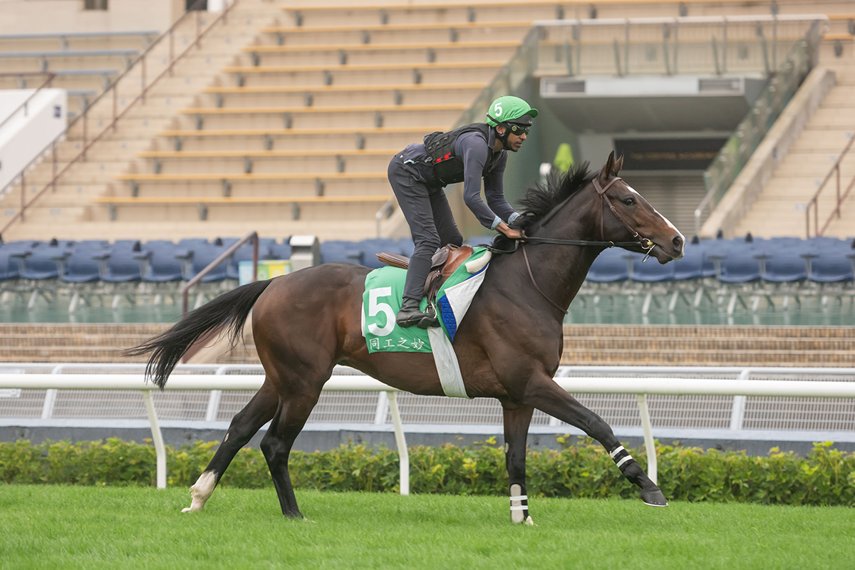 「同工之妙」今早首度在沙田草地跑道出操,在策騎員Christmy Derhoua胯下快跳一圈,首次跑過看台時加速,最後800米分段時間為26.9秒及24.8秒。