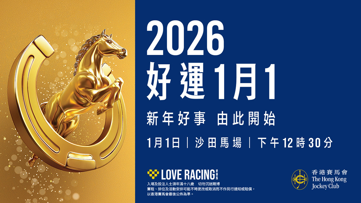 香港賽馬會將於2026年1月1日星期四在沙田馬場舉行「好運1月1」賽馬日,到場可獲贈指定「好運手提袋」*、大玩有獎遊戲並觀賞精彩賽事。馬會特備合共1.28億港元巨賞迎接新一年,包括於「好運1月1」賽馬日特設多寶大賞,合共高達2,800萬港元。香港居民及旅客到場同迎新年新氣象,新年好事,由此開始!
