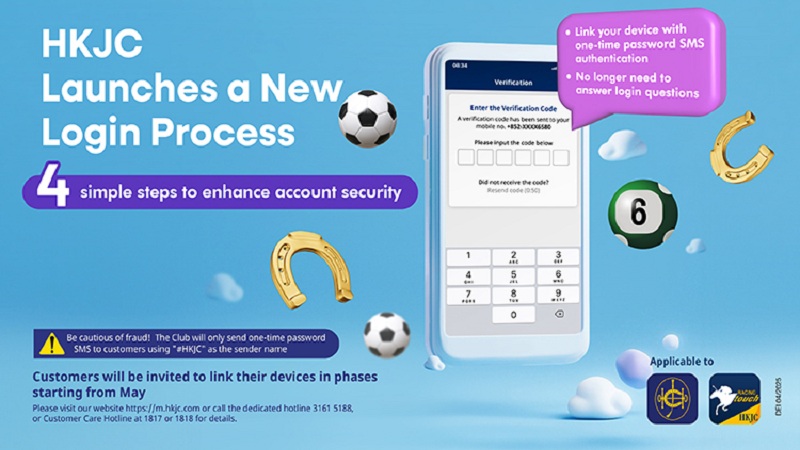 • Classic 3-in-1 and Racing Touch customers are advised to link their betting accounts with personal digital devices using one-time password SMS authentication with “HKJC" as the SMS sender name. Once set up, they will no longer need to answer login questions for subsequent logins and enjoy enhanced account security.
