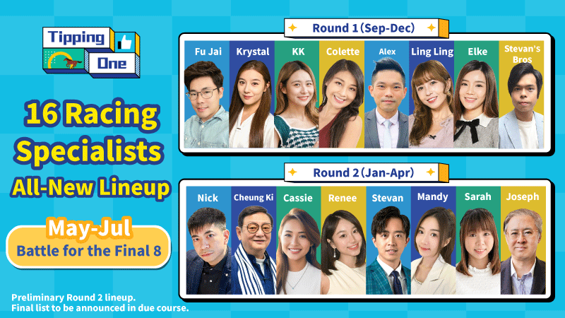 • "Tipping One" invites 16 Racing Specialists to compete in a knockout tournament divided into two rounds of 8 participants each, vying for the championship title. Customers enjoy a seamless betting experience with One-Click Direct Bet for Racing Specialist’s picks.