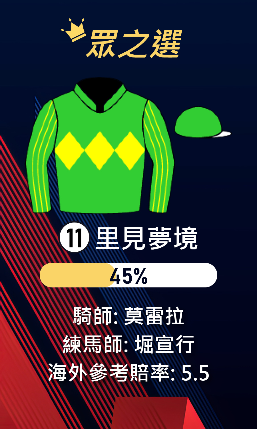 今年,日本的期望將落在由練馬師堀宣行訓練的「里見夢境」身上,這匹進步中的六歲短途馬,於3月下旬攻下一級賽高松宮紀念賽後,躍居日本1200米頂級賽駒行列。