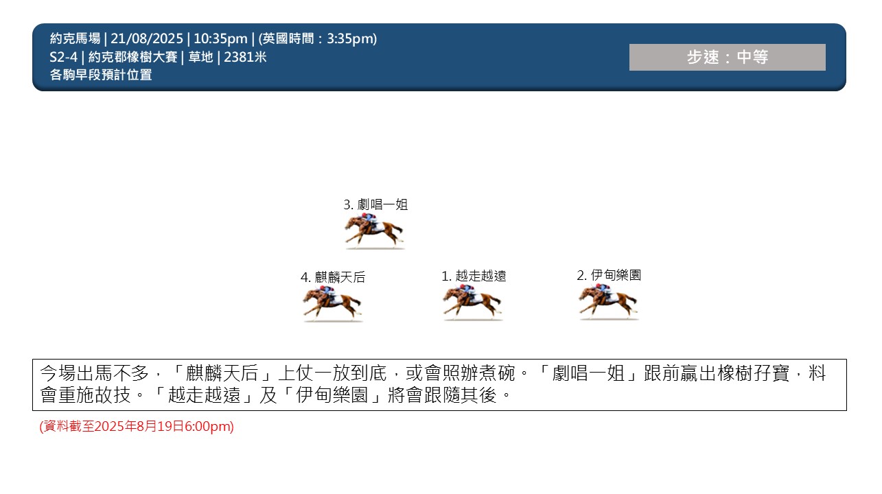 21/08/2025 (四) 22:35, 一級賽, 2381米, 草地, 約克馬場