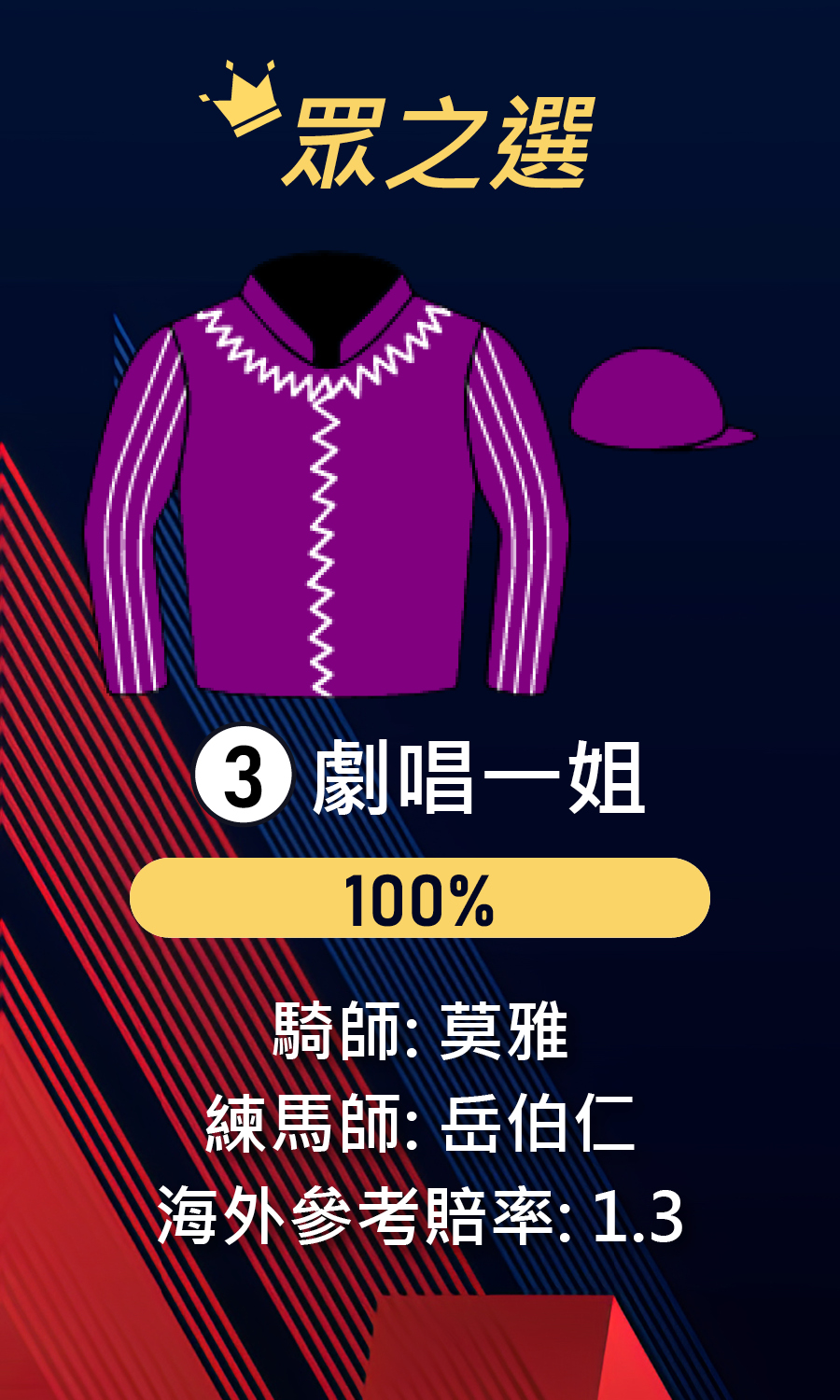 免責聲明: 以上內容及資料僅屬個別作者的個人意見,並不代表香港賽馬會及其附屬公司(“馬會”)的立場。作者提供有關內容及資料以作娛樂用途,而不應被視爲建議任何人作出投注,亦不應被視爲及/或依賴作任何意見。以上內容及資料未經馬會確認、核實或認可。馬會將不對任何人士因使用或依賴以上內容及資料所蒙受的任何損失或損害負上責任,亦不會作出任何賠償。 馬會將不須給予並且不給予任何由以上內容及/其他資料所引起的或與之有關的明示或隱含之保証。馬會特此聲明所載的資料如有任何不確之處、遺漏或誤植錯字,並引致任何直接或間接的損失或虧損,馬會概不負責, 亦不會作出任何賠償(不論根據侵權法、合約或其他規定亦然)。此外,馬會並不保證以上所載的資料乃屬正確無誤及完整無缺,亦不擔保可以及時刊載最新資料, 而且內容適合有關用途。