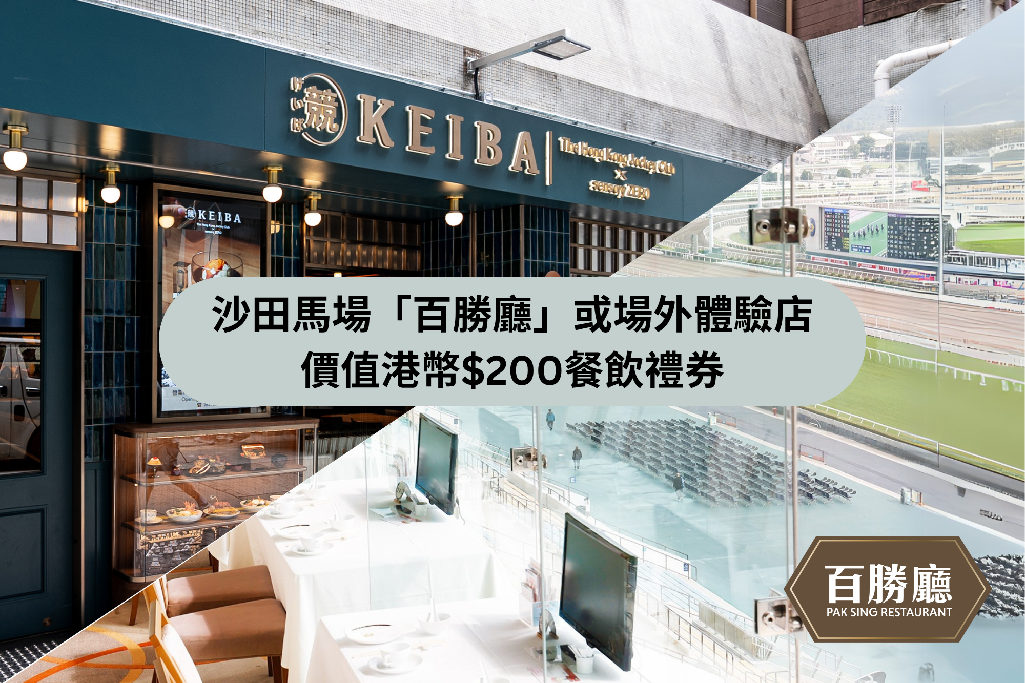 沙田馬場「百勝廳」或場外體驗店價值港幣$200餐飲禮券