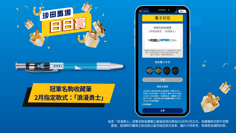 - 日日賞活動日子為2025年9月14日至2026年7月12日每個沙田馬場正場賽馬日。香港賽馬會(「馬會」)有權因應現場情況修改日日賞時間而毋須事先通知。