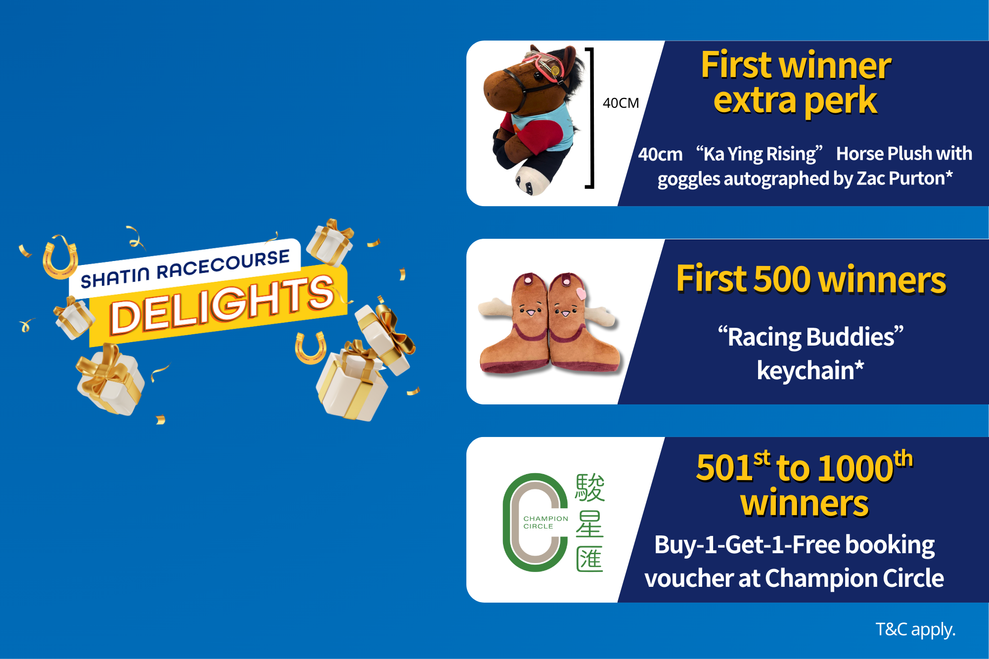 - This Programme is available from 14 September 2025 to 12 July 2026 on every Sha Tin Racecourse race day, subject to any change of arrangement by The Hong Kong Jockey Club (the “Club”) in view of the circumstances without prior notice.